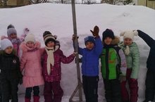 Необычная прогулка прошла сегодня в подготовительной группе. Воспитатель Ковальчук И. А. предложила ребятам отыскать самый большой сугроб на территории детского сада. Это не составило большого труда. Тогда воспитатель сказала ребятам, что это не просто огромная куча снега. Этот сугроб таит особую тайну. Только он может рассказать, сколько было снегопадов этой зимой. А чтобы это узнать понадобился длинный шест, на котором были сделаны отметки. Воспитатель вместе с детьми срезал пласт снега, и открылось чудо. Ребята увидели горизонтальные полосы, отличающиеся по цвету где-то светлее, где-то темнее. Это отметка после каждого снегопада объяснила ребятам воспитатель. Ребята посчитали, сколько было снегопадов этой зимой. Вот такую тайну раскрыл ребятам самый высокий сугроб.
