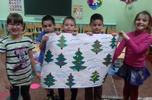 Сегодня воспитатель Макурина Е. В. предложила ребятам подготовительной "А" группы сделать коллективную работу - аппликацию. Дети - это маленькие творцы, они постоянно меняют мир вокруг себя. А еще они любят мастерить вместе со взрослыми. Неважно, что именно это будет, но ребят восхищает, когда взрослый ненадолго погружается в детский мир. Воспитанники вместе с педагогом решили создать новогодний сказочный лес. Свои ёлочки они украсили шарами, гирляндами и красивыми снежинками. Работа получилась очень красивой. Ребята остались довольными и повесили аппликацию в приемной, чтобы её увидели родители.