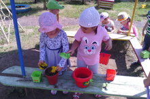 Сегодня воспитатель 2 младшей группы Ковальчук И. А. организовала с детьми выставку в песочнице. Выставка оказалась необычной. А все потому, что сегодня дети играли с водой. Используя бросовый материал (веточки, мелкие камни, семена растений, крышки, шишки и др.) маленькие фантазеры создавали свои творения. Кто-то работал в паре, а кто-то давал рекомендации, где лучше расположить украшения. Закрепляя представления о свойствах песка, учим детей проявлять творческие способности, развиваем воображение. Ребята даже придумали название своим творениям «Мамин тортик», «Божья коровка», «Грузовик» и др.