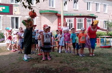 Сегодня в нашем детском саду прошел "Праздник весёлого лета". На праздник к воспитанникам в гости пришли весёлая Ириска и озорной Клёпа. Клёпа и Ириска провели с ребятами эстафету. Ребята носили наперегонки воду, вели мяч, как настоящие футболисты и помогали ведущему разобраться в "Путанице" в названиях сказок. Дети с легкостью справились со всеми заданиями. Праздник прошел весело и интересно. Ребята остались довольны и благодарны всем, кто подарил им такой праздник, а Клёпа и Ириска обещали снова зайти к ним в гости.