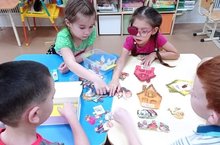 Менә шулай 1 кечкенәләр төркеме балалары күмәкләшеп кошлар туендыралар.