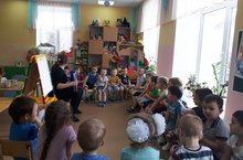 Беренче кечкенәләр төркеме балалары татар теле уен бүлмәсенә Алсу Фагил кызына кунакка бардылар. Аларны Акбай белән Мияу каршы алды. Балалар аларны сыйладылар, хәрәкәтле җыр-биюле уен да уйнадылар. Кунакка бару балаларга бик ошады .