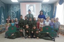 Воспитатель родного языка Миннебаева А.Ф. 15 февраля провела мероприятие, посвященное 113-ой годовщине со дня рождения советского татарского поэта и Героя Советского союза Мусы Джалиля. В ходе мероприятия дети узнали об интересных фактах из жизни поэта, его непростых детских и юношеских годах, о том, как он воевал, попал в плен. Воспитанник подготовительной группы Соловьев Артём подготовил творческий доклад о поэте, старшие и младшие группы рассказывали стихотворения поэта, написанные им для детей. Муса Джалиль был героем Великой Отечественной войны и в честь него дети с подготовительной группы подготовили «Парадный марш», играли в военные игры. По окончании мероприятия дети закрепили полученные знания - дружно отвечали на вопросы викторины