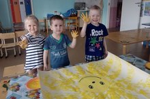 Рисование нетрадиционными способами, увлекательная, завораживающая деятельность. Это огромная возможность для детей думать, пробовать, искать, экспериментировать. Вот и сегодня в очередной раз, мы с детьми 2-ой младшей группы учились вокруг жёлтого круга делать лучики с помощью своих ладошек. Солнышко получилось очень доброе, лучистое и необыкновенно красивое.