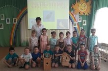 6 нчы апрель көнне бакчада зур бәйрәм - кошлар көне билгеләп үтелде. Яз килү белән җылы яктан кошлар туган якларына әйләнеп кайталар.Үзләренең матур сайраулары белән бөтен дөньяны ямьгә күмәләр. Бәйрәмебез дә кошлар тавышы тыңлап башланып китте. Матур җырлар тыңлап,төрле шигырьләр укып, кызыклы уеннар уйнап,бәйрәмебез кызганнан кыза барды. Бәйрәмнең иң кызыклы өлеше булып балта остасы Василий Петровичның балалар күз алдында сыерчык оясы ясау булды. Бәйрәм бик күңелле үтте.