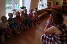 1 августа в рамках дня кукольного театра воспитатель Демахина В.М. показала своим малышам сказку «Маша и медведь». Сколько радости и восторга было на глазах у малышей! Каждый из них хотел потрогать куклы, поговорить, поиграть с ними. А самое главное, такие мероприятия способствуют облегчению адаптации к условиям детского сада.