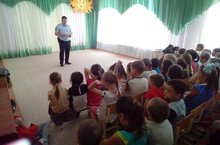 26 мая в детский сад «Солнышко» на встречу с детьми был приглашен инспектор дорожно-патрульной службы Лукин Максим Петрович. Он провел профилактическую беседу, рассказал детям о правилах для пешеходов, о правилах езды на велосипеде, об опасных ситуациях на дороге в летний период. Также инспектор привел примеры из жизни, рассказал о несчастных случаях с детьми на дороге, которые произошли по республике в этом году, призвал детей всегда соблюдать правила дорожного движения.