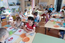 18 ноября воспитатель Тугашева Г.Х. в подготовительной «А» группе провела занятия на тему «Рыбки в аквариуме». Цель занятия: научить детей создавать образ сказочной рыбки, передавать в рисунке различные окраски цветов и ее форму, а также части тела. В конце занятия дети сделали красочную аппликацию.