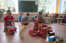 Дети подготовительной “Б” группы любят играть в сюжетно-ролевые игры. Мальчикам больше всего нравится игра “Строитель". Они любят сооружать разные многоэтажные жилые дома , школы, магазины, дворцы. В процессе игры дети общаются,учатся уступать,помогать друг другу.