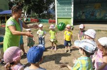 1 августа воспитатель Хабибуллина Ф.Ю. с воспитанниками 1 младшей группы провела на детской площадке игры с мячом. Цель игры: развивать ловкость, координацию движений и память. Дети всегда играют с мячом с большим удовольствием.