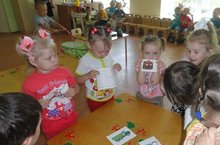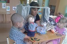 29 июня воспитатель 1 младшей группы Самигуллина В.Р. знакомила детей со способом лепки пирамидки конструктивным способом из 3-4 деталей. Она ставила задачу развивать у детей умение скатывать и сплющивать шарик, получая «лепёшечку». Закрепить умение сравнивать предметы по величине, а также воспитывать усидчивость и сосредоточенность.
