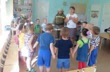 10 июня 2015 года в средней “А” группе воспитатель Мингазова Г.Н. провела с детьми беседу на тему: “Пожарный – герой, он с огнем вступает в бой”. В гости к ребятам пришел пожарный работник, который рассказал о трудностях своей работы. Объяснял ребятам, что спички не игрушка, учил их осторожности и бдительности. Данная беседа была очень познавательная и интересная.