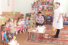 16 февраля 2015 года воспитатель первой младшей группы Юнусова Л.Ф. с детьми организовала экскурсию на кухню детского сада.