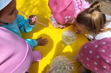 Лето - прекрасная пора для детей. Именно лето даёт нам удивительную возможность -получить огромный заряд здоровья на весь год. Режим и организованная деятельность детского учреждения позволяет ребёнку получить незабываемые эмоции от каждого проведённого дня. Сегодня во второй младшей и средней группе прошло необычное развлечение "День Мыльных пузырей". Мыльные пузырьки это просто детская забава? Нет, это ещё смех, радость, веселье, и необычные конкурсы!Сегодня у нас прошли мыльные состязания. А задания были самые разнообразные. У кого больше получится выдуть мыльных пузырей, чей пузырь дольше продержится на воздухе, кто быстрее найдёт свой домик, у кого самая пышная мыльная пена и многое другое. На нашем празднике присутствовали малыши, они с большим интересом наблюдали за соревнованиями, бегали, поймали мыльных пузырей. Праздник удался, погода была прекрасная!