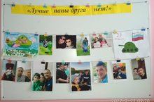В старшей группе стало доброй традицией к каждому празднику оформлять тематическую выставку. Воспитатели стараются не повторяться, каждый раз придумывают что-то новое. Вот и к празднику 23 февраля появилась выставка фотографий "Лучше папы друга нет!". Выставка оформлена по типу фотосушки.