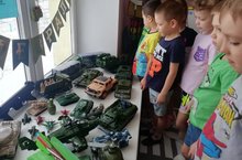 В старшей группе была организована выставка игрушечной военной техники и оружия, приуроченная к Дню защитника Отечества. Приоритетной задачей выставки является воспитание юных патриотов и будущих защитников, формирование гордости за свою Отчизну. Дети и родители принесли в детский сад игрушечные танки, самолеты, орудия. Ребята познакомились с различными видами военной техники, узнали об ее предназначении. Просмотр экспонатов выставки сопровождался рассказам воспитателя о назначении каждой единицы военной техники, о Героях Отечества. Выставка вызвала большой интерес у ребят. После её посещения мальчики единодушно решили: будем служить в армии!