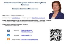 График личного приема граждан Уполномоченным по правам ребенка в Республике Татарстан: