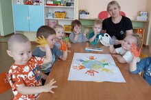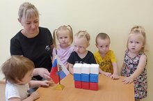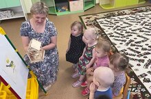 Ребята из самой младшей (ясельной) группы вместе с воспитателем Кубышкиной М.В. рассматривали, как выглядят синицы. Воспитатель рассказала, что в теплое время года они живут в лесах, а когда наступают холода, синички прилетают ближе к людям.