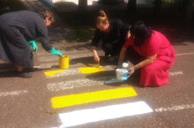 Воспитатели участвуют в благоустройстве детского сада. Покрасили разграничения на спортивной площадке