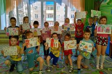 Воспитанники подготовительной "Б" группы с воспитателем Поповой Е.Н. подготовили рисунки на тему «Мы в мире, дружбе будем жить».