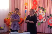 Сегодня в предпразничный день в детском саду поздравляют: мамы воспитанников принимают в подарок поделки детей. Педседатель профсоюзного комитета и заведующий поздравили коллектив.