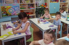 В старшей группе Зяббарова М.А. провела организованную образовательную деятельность, которую завершили аппликацией "Дружные ребятки"