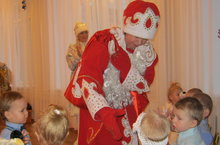 С 23 декабря в ДОУ началась череда новогодних утренников. Сегодня самые маленькие дети на утреннике впервые увидели Деда Мороза.