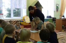 Всех матрёшками зовут.Сегодня в первой младшей группе «Зайчонок» воспитатель Муханова Ю.И. познакомила своих малышей с русской народной игрушкой Матрешкой. Народная игрушка является, при тщательном её изучении, неисчерпаемым источником мудрой и творческой педагогики. Матрёшка является важным средством эмоционального воздействия на детей. Разнообразие видов матрёшек, неповторимость их внешнего облика служат основой для проявления элементов творчества в игре, рисовании детей. Народная игрушка будит мысль и фантазию ребёнка. Точёная деревянная фигурка девушки Матрёны в сарафане и с платочком на голове невольно привлекает внимание яркой раскраской и вызывает улыбку. Фигурка разнимается, и вдруг возникает другая, меньших размеров, но более красивая. И эта в свою очередь разнимается и представляет ещё фигурку, потом ещё и ещё.