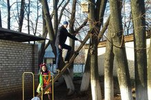 Результатом хорошей подкормки является то, что стайки птиц в ожидании корма держатся на участке детского сада, ждут его