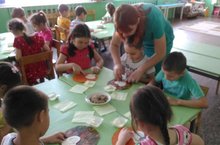 Обучение детей татарскому языку в детском саду - одна из самых сложных методических задач. Поддерживать интерес к обучению помогает ярко и красочно оформленный наглядно демонстрационный и раздаточный материал, аудио- видео записи. Использование аудиозаписей развивает речь и воображение ребёнка. Сейчас стало интереснее преподавать татарский язык русскоязычным детям дошкольного возраста. Если раньше в преподавании доминировала теория, то сейчас идёт обращение к практике ориентированности, мультимедийности, обучения с помощью игр, сказок, мультфильмов. То есть дети теперь учатся играя. В целях эффективного использования УМК в режимных моментах, дети второй младшей и средней группы становятся частыми гостями в кабинете татарского языка. В целом методика обучения татарскому языку построена на принципах игры, сказки, воображения, фантазии, сравнения, соединения действия со словом, многократного повторения и обыгрывания всех изучаемых моментов. Таким образом тематика двуязычия является жизненно важным вопросом для современной системы дошкольного воспитания. -