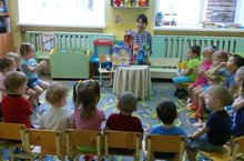 В первой младшей группе все занятия направлены на развитие коммуникативных качеств; умения общаться со сверстниками, выполнять вместе со всеми простые движения, исполнять песенки, обыгрывать с помощью жестов попевки и небольшие стихотворения. Большое внимание уделяется театрализованной деятельности, которая способствует речевому развитию ребенка, стимулирует активную речь за счет расширения словарного запаса, помогают малышам освоить элементарные этические понятия, воспитывают культуру общения и эмоциональную отзывчивость, развивают эстетический вкус. Наши малыши очень любят слушать сказки и каждый день с нетерпением ждут, когда воспитатели познакомят их с новой сказкой.