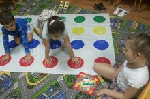 Дети познают мир и проходят важные этапы развития – через игру. Так формируются мыслительные процессы, память, логика, воображение. А еще мальчики и девочки, играя, учатся существовать в команде, взаимодействовать, быть терпимей и мудрей. В этом году в подготовительной к школе группе "Комарик" появилась увлекательная игра «Твистер» и сразу привлекла внимание детей своим правилом – совершать различные «выкрутасы» на коврике и за столом с разноцветными кругами. Ребята разминаются в любую минуту. Играя в Твистер, дети тренируются в ловкости и гибкости и просто вдоволь веселятся. Играя в твистер у детей происходит развитие координации движений. А также в центре внимания – задача правильно определять право – лево. Ребенок тренируется быстро находить нужную руку или ногу, что пригодиться младшим школьникам на уроках математики, физкультуры и хореографии. А рулетка научила детей читать простые слова «рука», «нога», «левая», «правая». Для некоторых – это первые шаги в чтении.