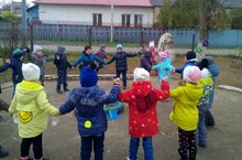 В старшей группе "Медвежонок" воспитаталь А.В. Абрамова, совместно со своими воспитанниками, на прогулке провели очень веселую русскую народную детскую игру "Кошки-мышки".