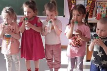 В средней группе воспитатель Васильева Гульшат Рашитовна провела среди детей конкурс рисунков на асфальте под названием "Планета детства!". Юные художники нарисовали яркое солнышко, море цветов, передавая разнообразие летних красок.
