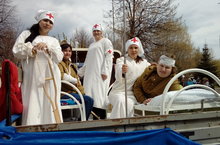 Коллектив нашего детского сада принял участие в составе автоколонны с живыми картинами, напоминающими о ходе Великой отечественной войны. На машине нашего ДОУ участники парада смогли увидеть сюжет "Военный госпиталь"