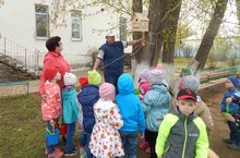 Родители одного из воспитанников старшей группы подарили ребятам скворечник. Несмотря на то, что весна уже подходит к концу, скворечник все же повесили на участке детского сада. Радости ребят не было предела.