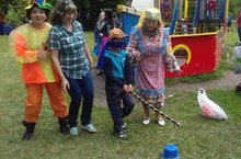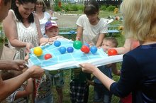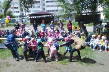 Сотрудники детского сада приняли активное участие в проведении городского праздника «Сабантуй». Педагоги провели с детьми веселые игры на детской площадке: дети соревновались в перетягивании каната, разбивании горшков и беге с ложками.
