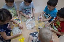 В последнее время мы часто говорим и слышим об инновационных технологиях в работе с дошкольниками. ФГОС дошкольного образования побуждает педагогов ДОУ к поиску инновационных, интересных методов и технологий в работе с детьми, которые обеспечивают их комфортное пребывание в условиях ДОУ. Одна из таких технологий – это песочная терапия. Песок – это универсальное средство для творчества и терапии, который оказывает развивающее действие на детей. К. Д. Ушинский писал: «Самая лучшая игрушка для детей – кучка песка!». Игра с песком – одно из самых любимых занятий детей. Но игра с песком – это не простое времяпрепровождение. Это много новых эмоций и развивающих игр. Ребенок сам тянется к песку, и надо только придать этой тяге творческую составляющую и из обычного ковыряния в песке получается образовательный процесс. В подготовительной группе педагог Торопова О.А. использует кинетический песок в работе с детьми. Сегодня им было предложено слепить морских обитателей, что вызвало живой интерес. У детей развивается мелкая моторика, творческое воображение, коммуникативные навыки, которые способствуют созданию гармоничных отношений между взрослым и ребенком. Кинетический песок является идеальным материалом, который может воплотить любые образы и замыслы.