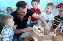 Во второй младшей группе «Жемчужинки» папа Пиянзина Вани показал ребятам мастер-класс по изготовлению скворечника. Малыши с интересом наблюдали, как из простых дощечек получается домик. Каждый хотел поучаствовать в таком интересном и творческом деле: мальчишки подавали дощечки и гвоздики, девочки бережно придерживали крышу домика, а самые сильные и смелые даже вкручивали саморезы. У нас получился самый необычный скворечник «Старичок-лесовичок», который будет оберегать птиц. Дети были в восторге и пожелали, чтобы наш скворечник на городском конкурсе занял первое место.