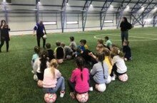 Воспитанники посетили футбольный манеж и встретились с тренером по футболу МБУ СШ «Барс» ЗМР РТ. Тренер разучивал с ребятами различные приемы ведения мяча, продемонстрировал виды ударов головой, ногами, носком, внутренней и внешней стороной стопы, пяткой. Показал, как правильно вести и останавливать катящийся мяч.Большую пользу в освоении правил и техник футбола принесло упражнение «Ну-ка отними!» в паре с тренером.