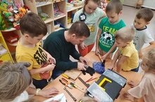 Роль отцов в нашей жизни неоценима – это глава и опора семьи, защитник, пример и идеал для каждого ребенка. В преддверии праздника, в подготовительной группе «Звездочки» состоялся мастер – класс «Папины руки не знают скуки». На мероприятие был приглашен папа нашего воспитанника. Фарит Радифович познакомил детей с «Мужскими» инструментами (молоток, гвозди, отвертка, плоскогубцы, пила – ножовка, лобзик). Дошкольники узнали об их назначении, закрепили правила пользования и технику безопасности. Ребята побывали в роли плотников и испробовали навыки – шкурить, столярить, плотничать, дрелить, забивать гвозди. Встреча получилась познавательной и интересной