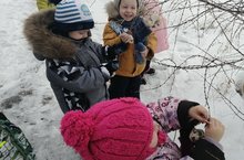 Сегодня самые маленькие воспитанники нашего детского сада вместе с воспитателем Чернышевой Е.Ю. повесили кормушки , сделанные своими руками, и угостили птиц. -