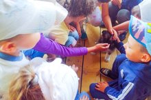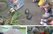Сегодня наши вновь прибывшие малыши познакомились с его обитателями. Рассмотрели растения и цветы, наблюдали за играющими хомячками. А сколько было положительных эмоций у ребят, когда им дали погладить черепаху и покормить рыбок. Маленькие воспитанники восприняли это событие как настоящее путешествие.