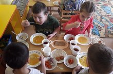 Международный день супа отмечают традиционным застольем. Главное блюдо на столе в этот праздник – суп. Ребята группы «Колосок» тоже решили своеобразно отметить этот необычный день и подсмотреть, как же суп готовит повар. Узнали, что для хорошего бульона необходимо чистая вода, а чтобы суп получился наваристым - картофель, лук, морковь и возможно даже крупа. По возвращении в группу всем захотелось попробовать "солнечный" гороховый суп. -