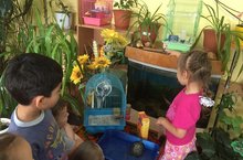 А затем в живом уголке природы, ребята позаботились и покормили черепашек, попугая, хомячков и рыбок. -
