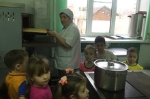 Повар - это человек, профессией которого является приготовление пищи. Вот и мы с нашими воспитанниками решили узнать, где и как повар готовит нам еду. С большим удивлением дети смотрели на большую плиту, где готовится еда, рассмотрели духовой шкаф, овощерезку и как она работает. Дети с любопытством задавали вопросы повару, на которые они получали самые разные ответы. В конце мы поблагодарили нашего повара Розу Алексеевну за очень вкусную еду, которую она нам готовит.