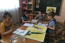 В подготовительной группе «Солнышко» прошло занятие по рисованию «Композиция с цветами и птицами». На занятие дети рассматривали иллюстрации с птицами и цветами , учились создавать декоративную композицию в определённой цветовой гамме.