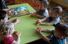 Сегодня наши ребятишки - малышки познакомились с новой пальчиковой игрой «Колобок». -