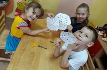 Сегодня на прогулке мы с ребятами рассматривали снежинки. Беседовали о их красоте, разнообразии, уникальности, о том откуда появляются снежинки, почему тают на теплой ладошке. После прогулки деткам была прочитана сказка про снежинку, далее было предложено вырезать всем свою снежинку, не похожую на других. У всех ребят получились красивые, разнообразные снежинки. Старшим ребятам было задано придумать и рассказать сказку о своей снежинке. Все ребята справились с этой задачей. -