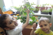 Дети вместе с воспитателями посадили семена овощей. В течение 2-х месяцев все ухаживали за рассадой, пололи, поливали, привязывали плети и, конечно же, наблюдали за ростом овощей. И вот наконец-то наступил день сбора урожая. Дети снимали урожай, а затем все дружно съели огурчики, выращенные своими руками. Было очень вкусно.
